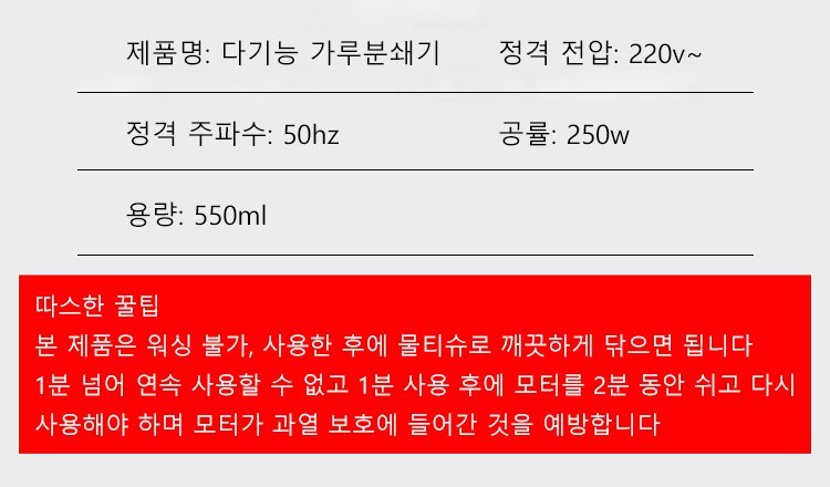 50% 세일 판촉, 마지막 1시간!!!독일에서 온 초고속 가정용 분쇄기는 강력한 성능으로 더욱 고운 가루를 만들어냅니다.로켓배송【CJ택배】인천 창고에서 직발송합니다